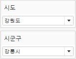 ['시도'] 에 마우스를 갖다대면 오른쪽에 아래 삼각형 표시가 나타난다.