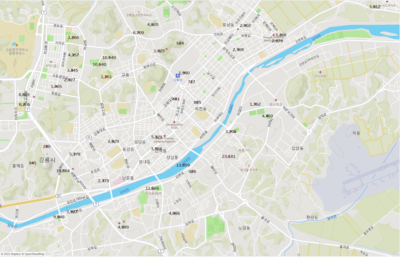 강에 표시되어있는걸 보니 좌표정보가 썩 정확하지 않은 것 같다.