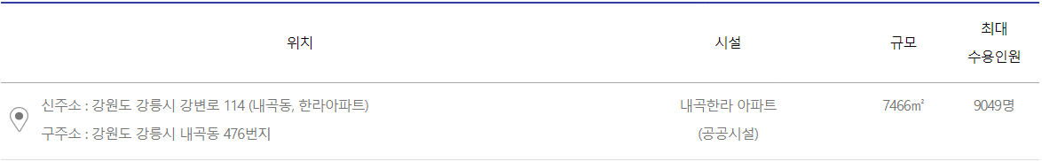 민방위대피소를 클릭하면 민방위대피소 상세정보가 나온다.