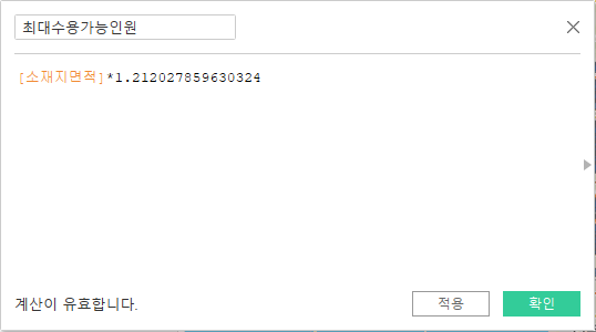 최대수용가능인원을 끌어다 크기에 놓는다.
